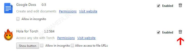 احتمالا مشکل جاری بدلیل پلاگین هایی به وجود می آید که ناخواسته و یا به اختیار شما در مرورگر نصب شده اند. پس بهترین راه پاک کردن تمام پلاگین هاست. در ادامه میتوانید نحوه انجام این کار را در ۴ مرورگر پر استفاده مرور کنید.