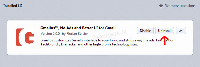 ۲ – از سمت چپ صفحه گزینه ی Extensions را انتخاب کنید و تمام گزینه های موجود در لیست پلاگین ها را حذف یا غیرفعال کنید.